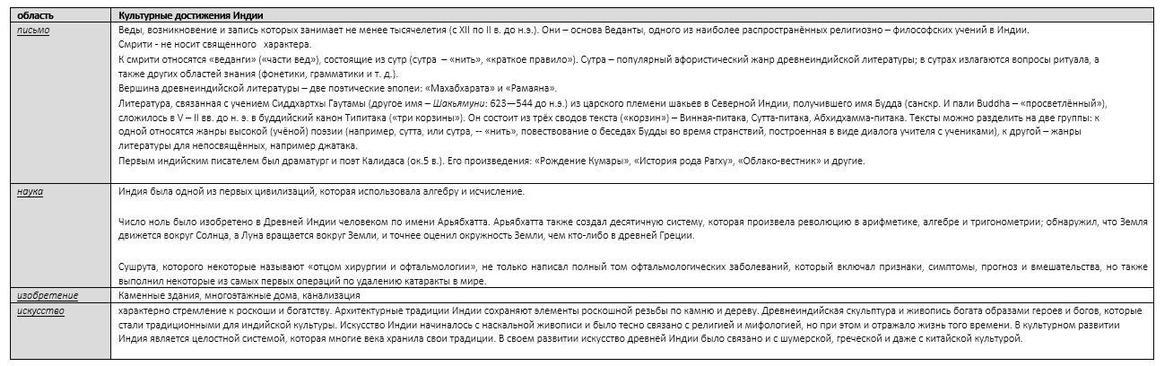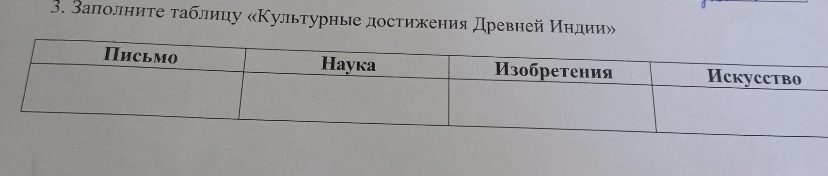 3. Заполните таблицу «Культурные достижения Древней Индии» Письмо Наука Изобретения Искусство. Напишите пж только не много.Это соч