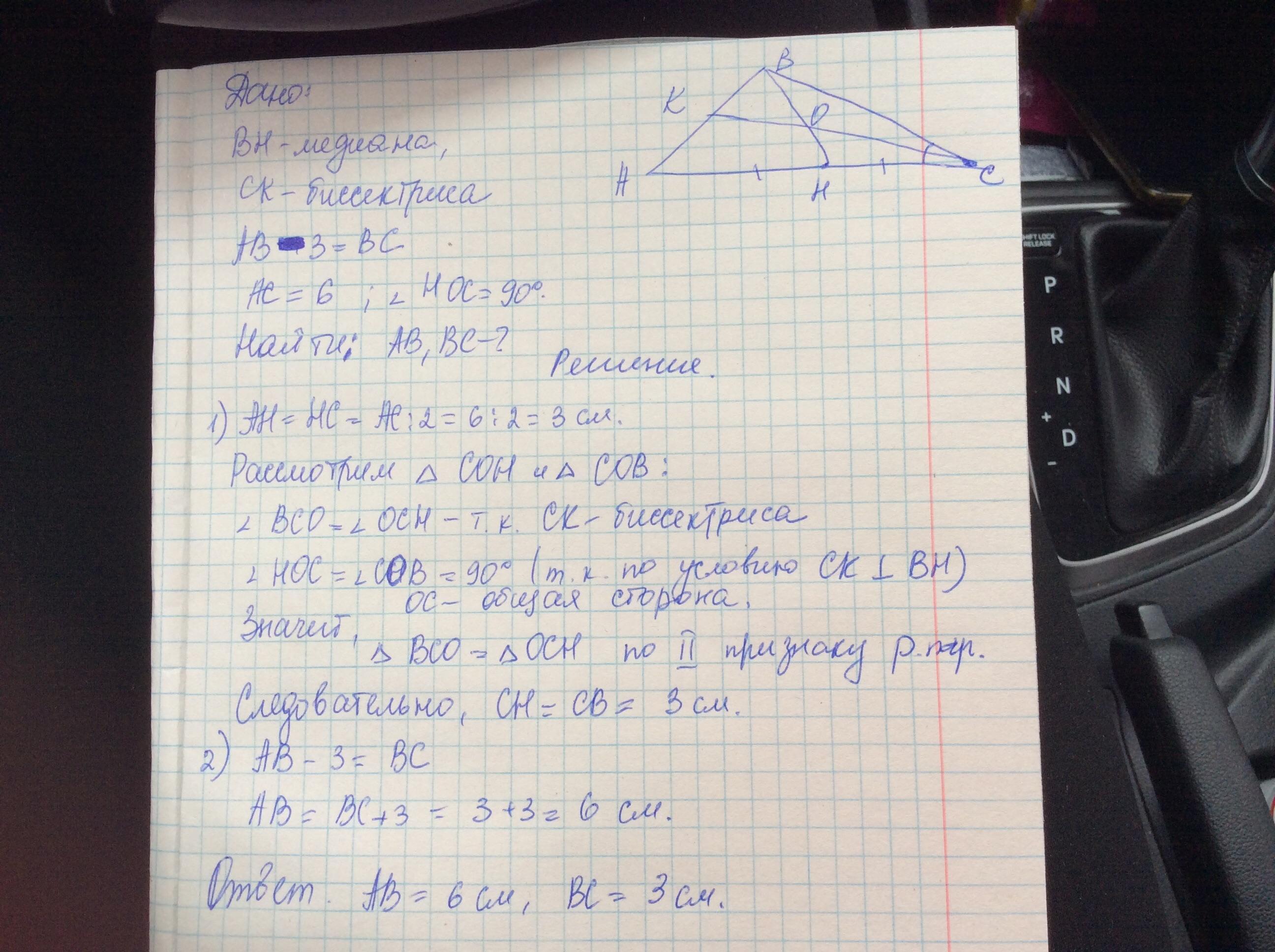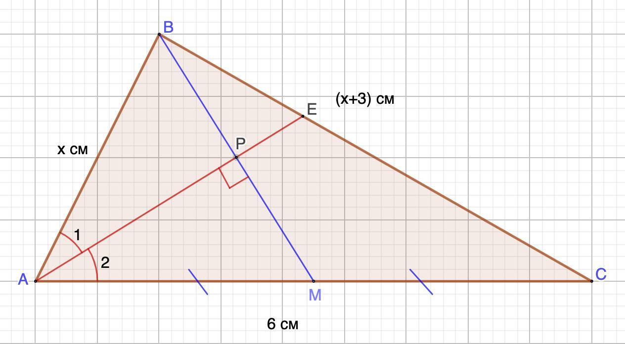 АМ = МС = 6 : 2 = 3 (см) (ВМ - медиана)