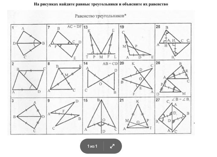 на рисунке найди равные треугольники и объеснить их равенство