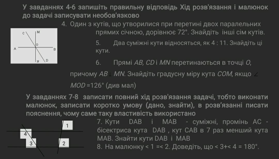 5 . 4х + 11х = 180° ; В - дь : 48° і 132° .