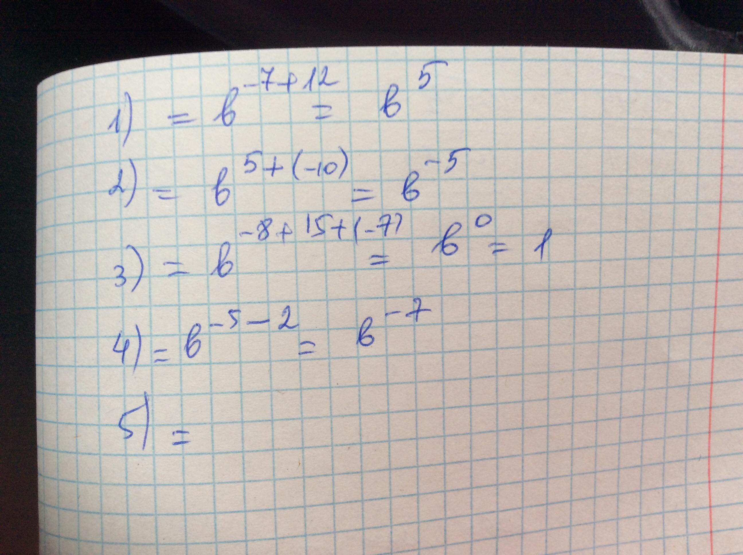 1) b⁻⁷·b¹²=b⁻⁷⁺¹²=b⁵