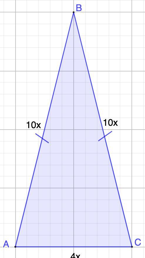 Пусть АС = 4х см; тогда АВ = ВС = 10х см.