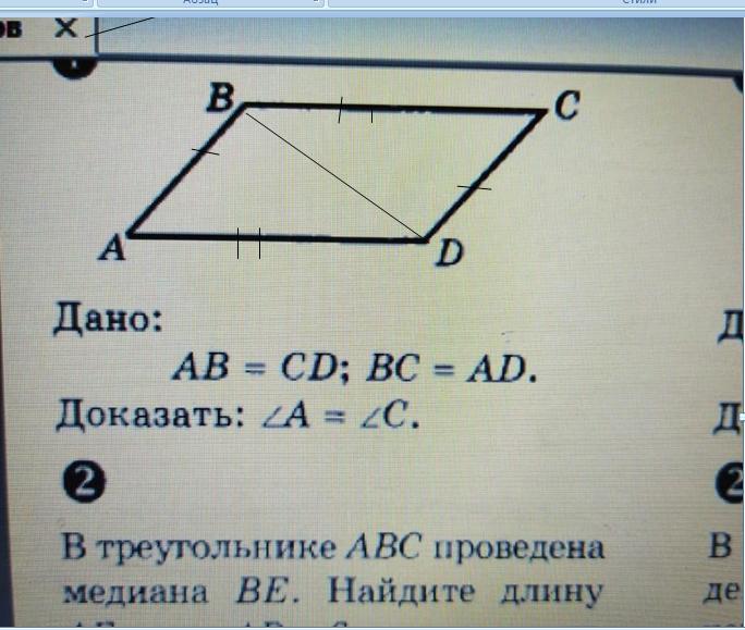 4) △АВD=△DCB ( по третьему признаку равенства треугольников) => равны все их соответствующие элементы, значит ∠А=∠С