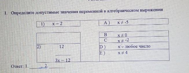 2) E, если представить x=4, то при вычислении значения знаменателя получится 0, на ноль делить нельзя.