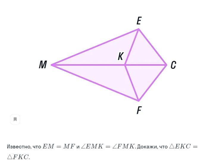 Известно что EM= MF и угол EMK= углу FMK докажите что треугольник EKC= треугольнику FKC.