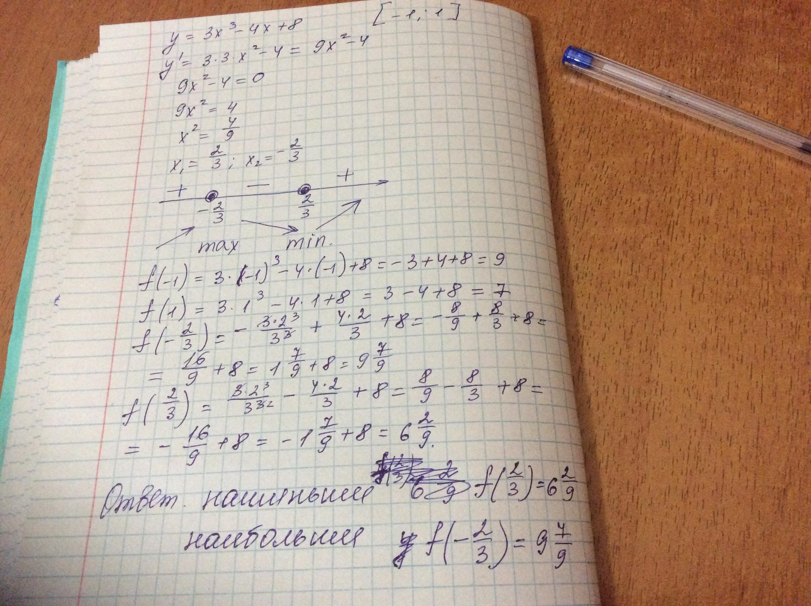 теперь в функцию надо подставить -1, -2/3, 2/3, 1 ,