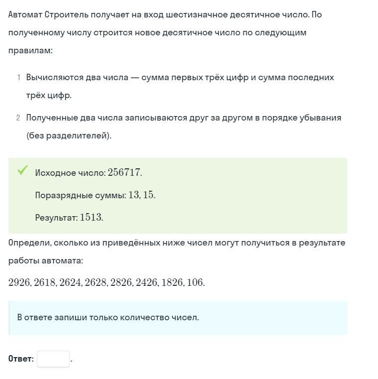 Определи, сколько из приведённых ниже чисел могут получиться в результате работы автомата. В ответе запиши только количество чисел.