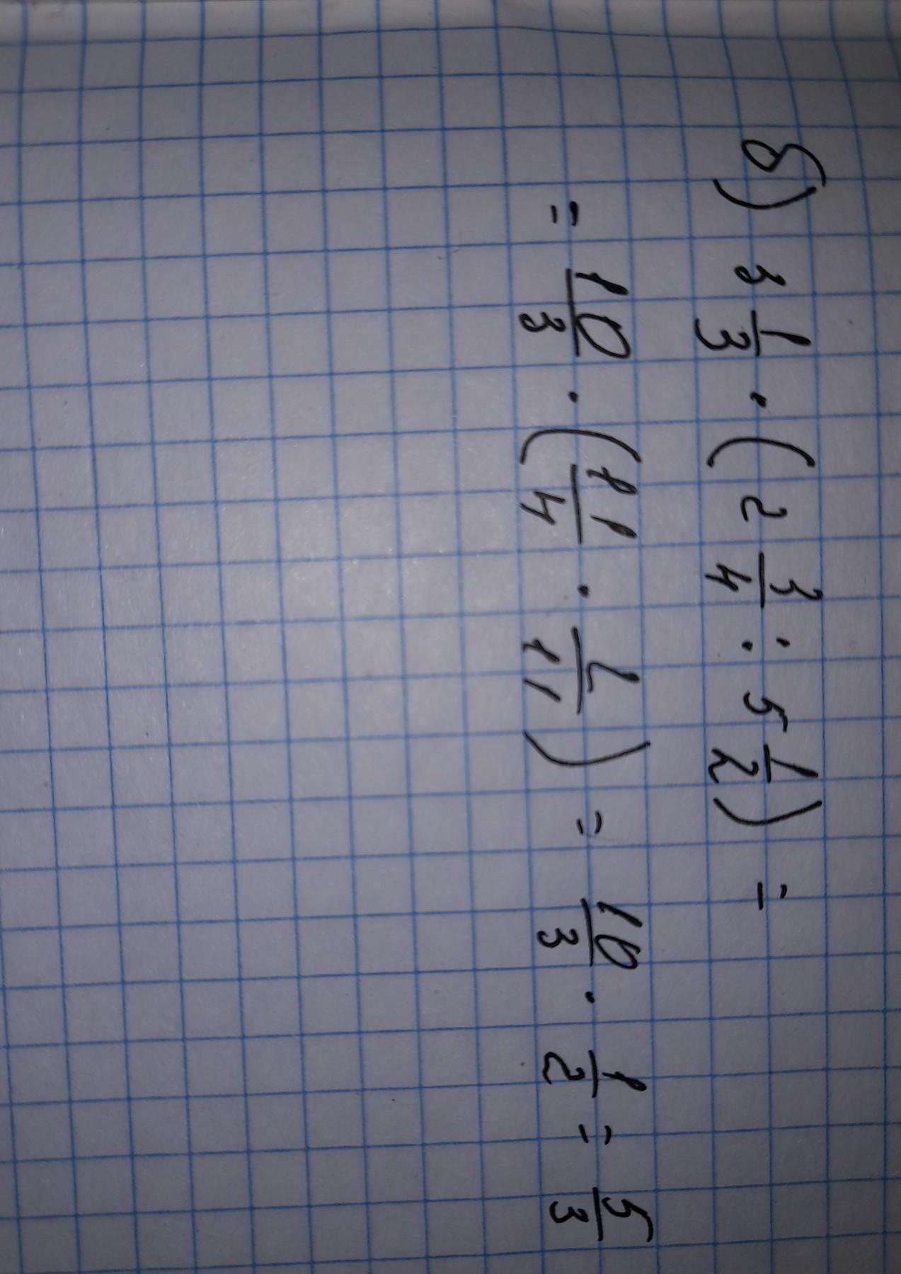 б) 3 1/3*(2 3/4÷5 1/2) = 3 1/3 * (11/4 * 2/11) = 3 1/3 * 1/2 = 10/3 * 1/2 = 5/3 = 1 2/3