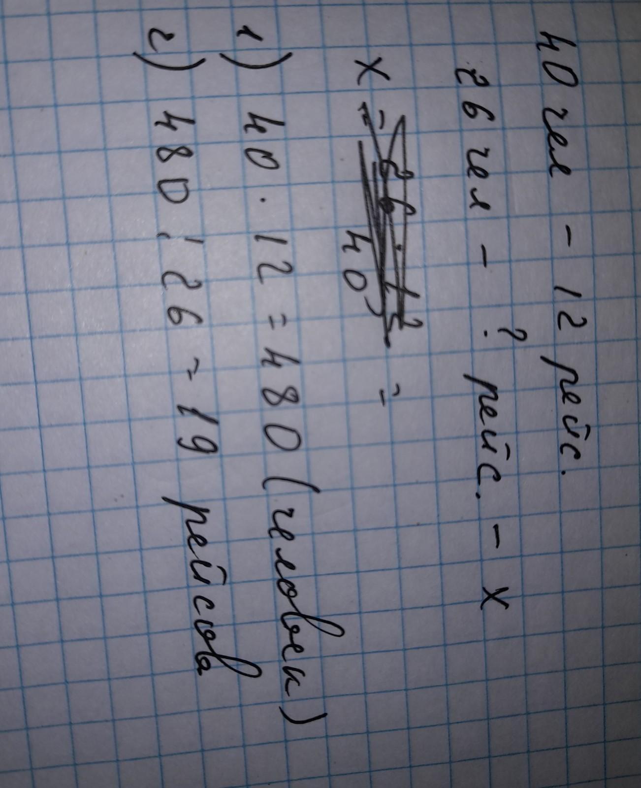 2. Для перевозки зрителей олимпиады в первый день автобус вместимостью 40 человск сделал 12 рейсов Сколько рейсов придется сделать автобусу вместимостью 26 человек.