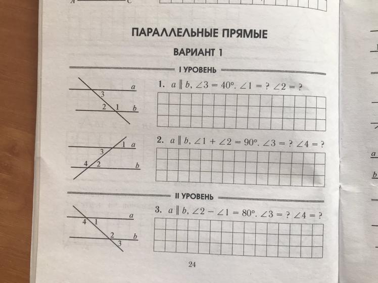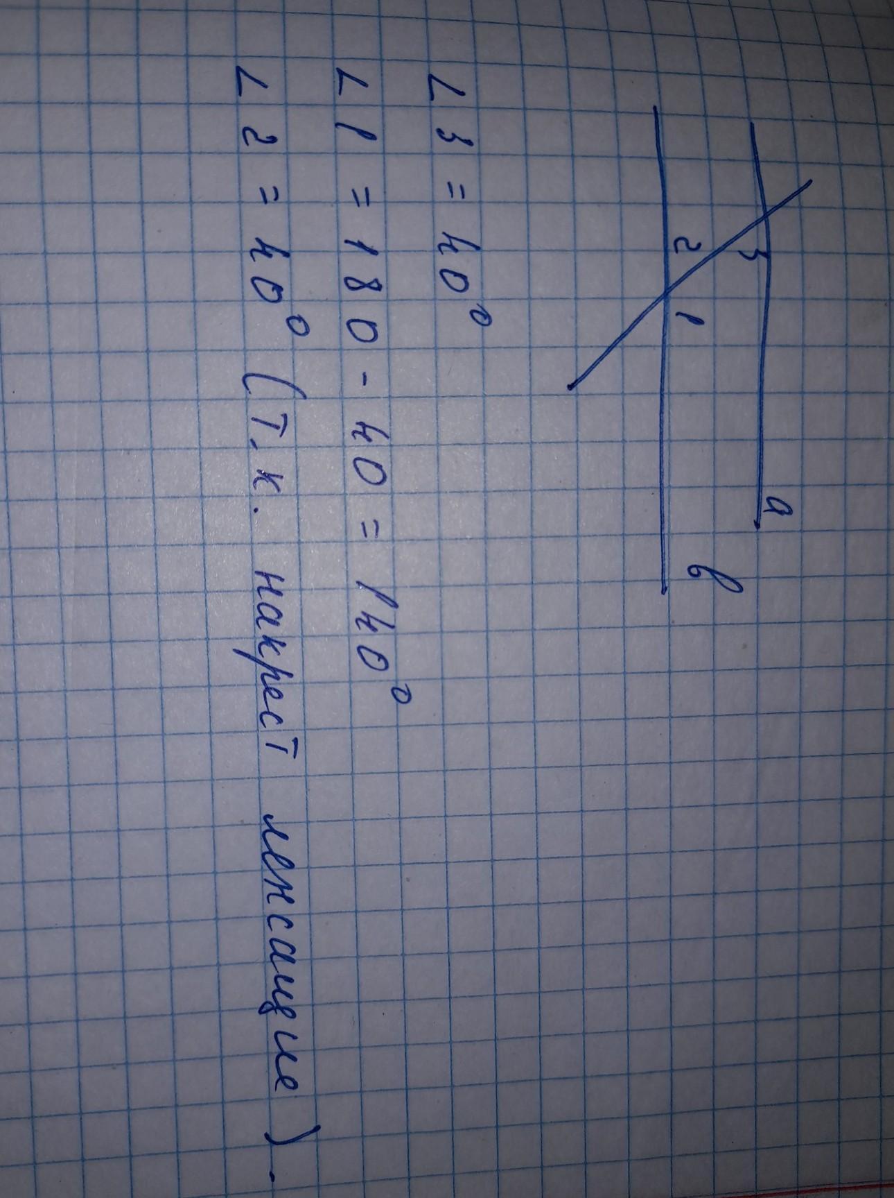 a||b, угол 3=40 градусов. Найти угол 1 и 2