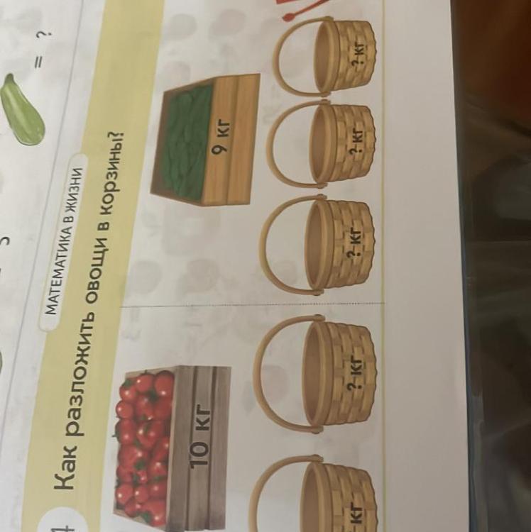 1) 10:2=5 (по 5 кг в обе корзины)