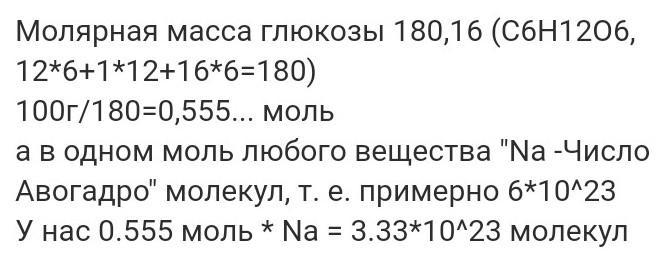 n(C₆H₁₂O₆) = 100 г / 180 г/моль ≈ 0,56 моль