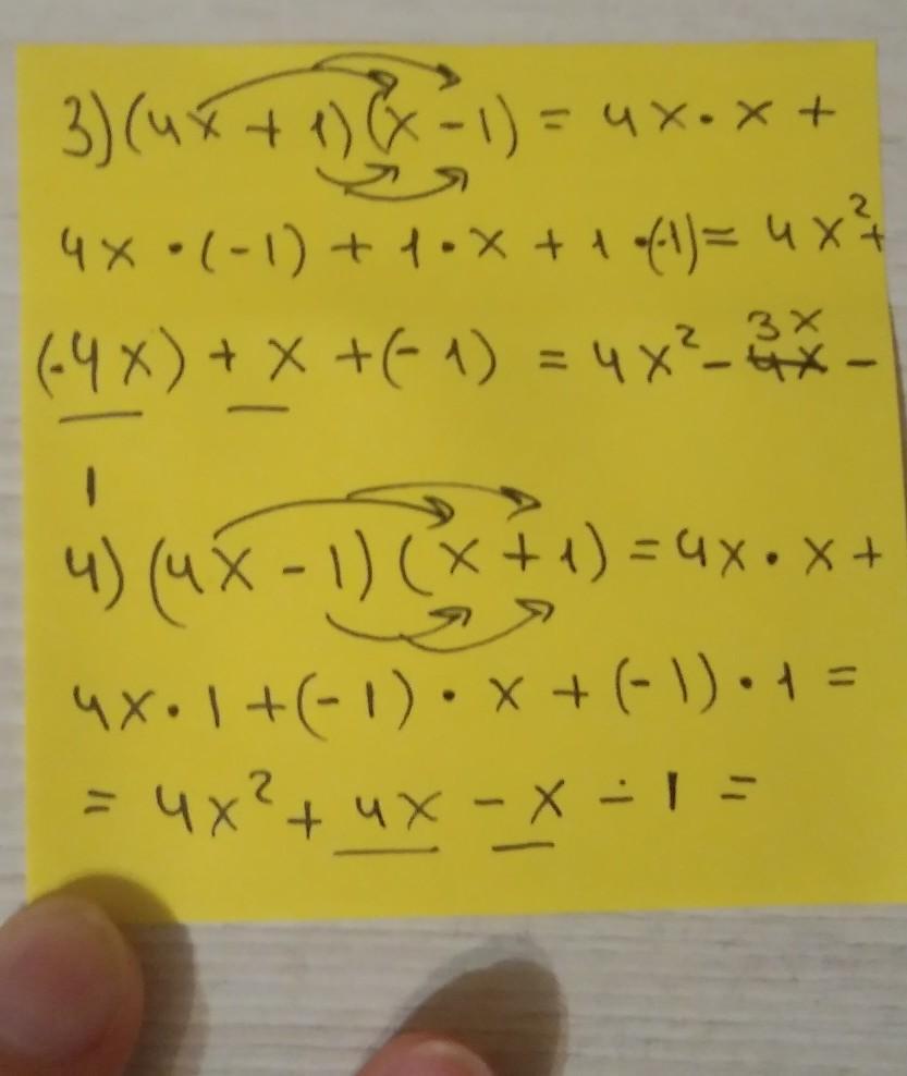 3) (4х+1)(х-1)= 4х²-4х+х-1= 4х²-3х-1