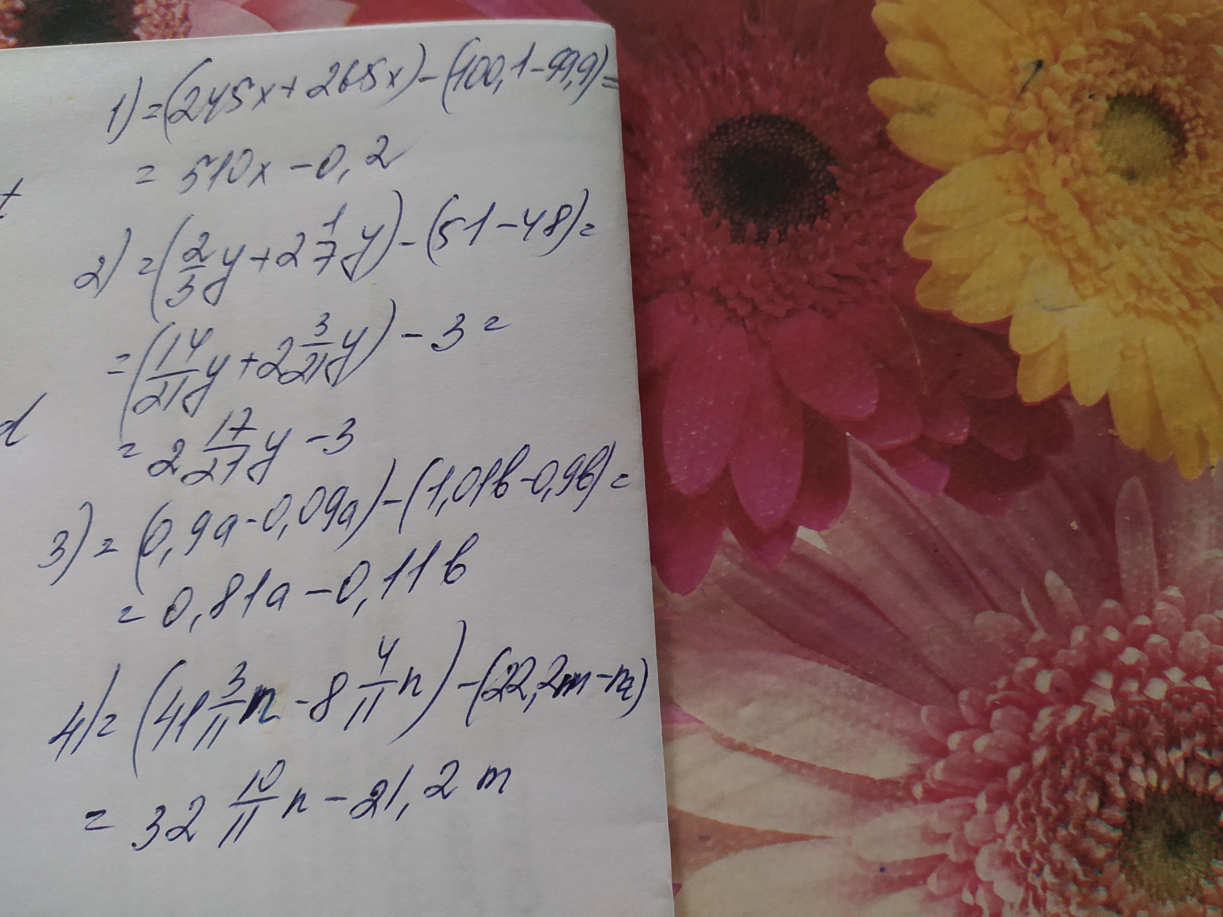 Приведите подобные слагаемые (760—761): 760. 1) 245.r - 100.1 + 265. + 99,9; 2) y + 48 + - 2= - 51; 3 3) -0,09a -1,016 + 0,9a + 0,96; 4)41 — n+m 4) 41 11 8 n- 22,2т. 11 -