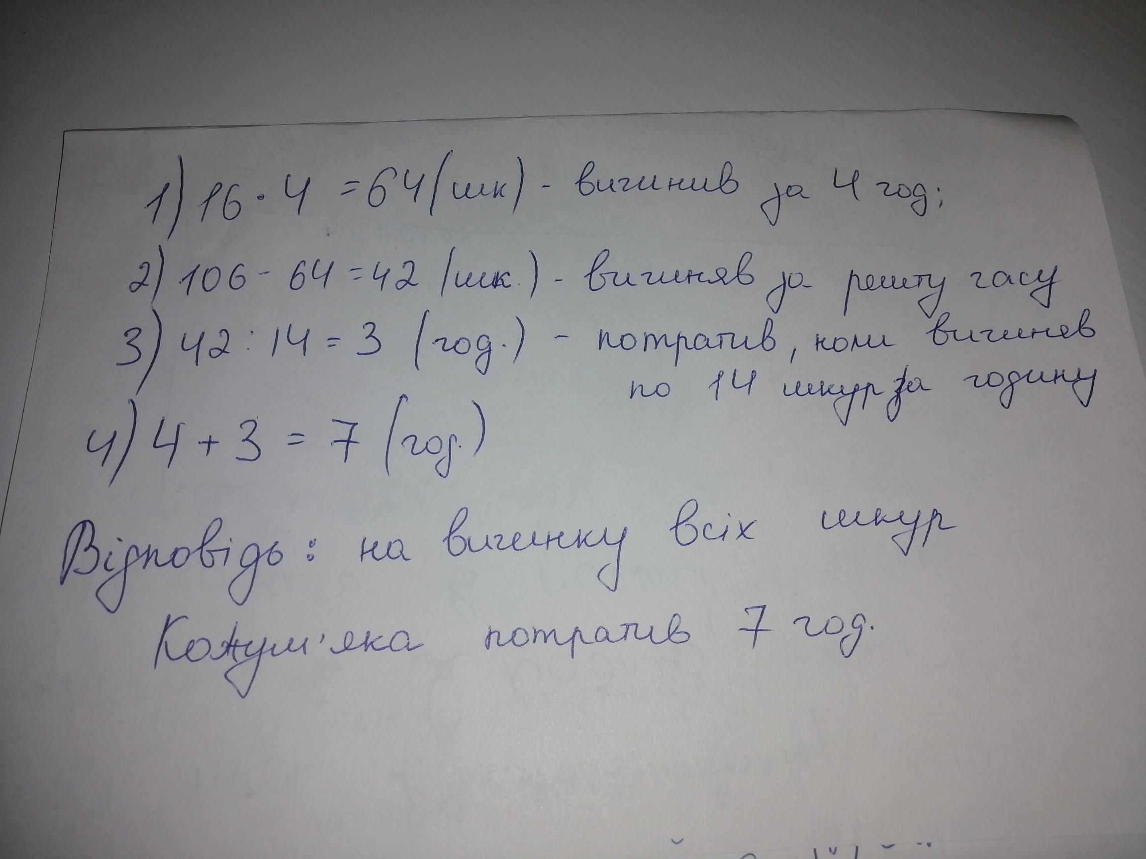 тім почав вичиняти по 14 шкур за годину. Скільки часу
