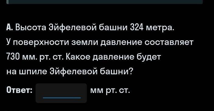 Давление на шпиле Эйфелевой башни будет 702 мм. рт. ст
