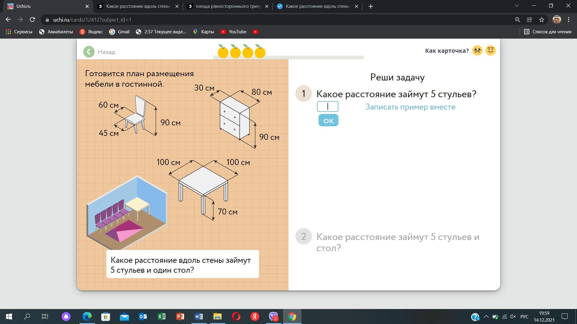 2700×5=13500 (м^2) - 5 стульев
