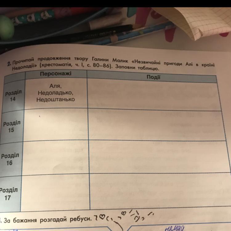 Недоладні» (хрестоматія, ч. 1, с. Во-во). Заповни таблио.