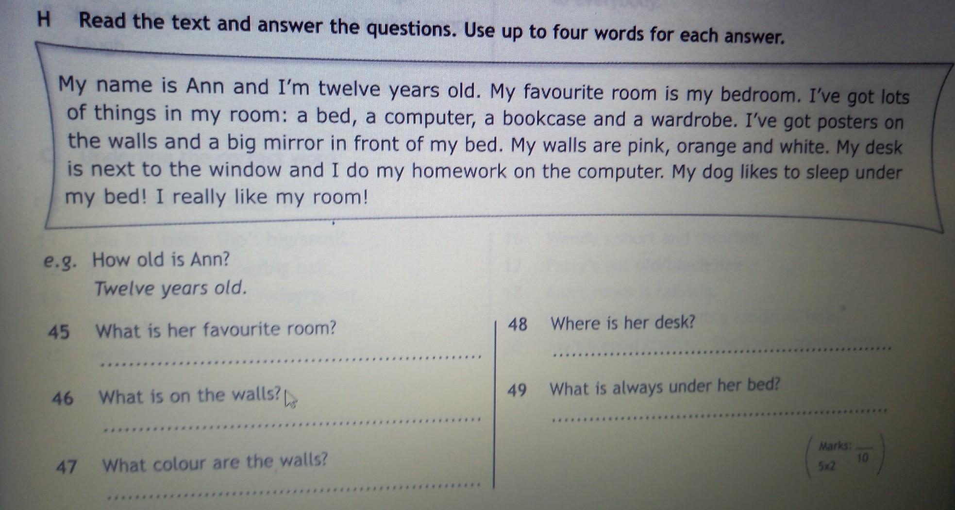 45)Her favourite room is her bedroom