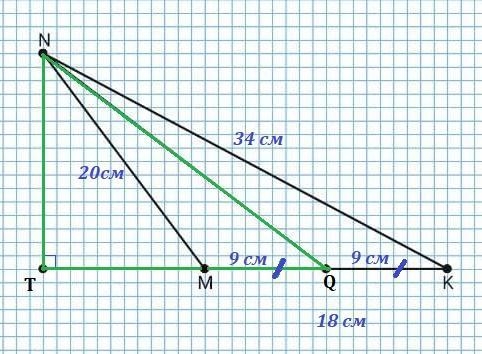 в треугольнике MNK сторона MN=20, NK=34, MK=18. Из вершины N проведена медиана NQ и высота NT. Чему равна площадь треугольника NQT?