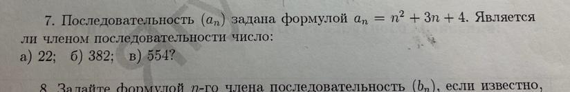 так как ответы были уже даны, отвечу комментарием: все варианты ответов являются членами последовательности. Если n = 3, то результат 22; Если n = 18, то результат 382; Если n = 22, то результат 554;