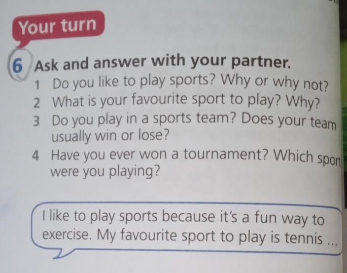 1.Yes, I like playing sports because it is interesting for me and good for my health (хелс читается)