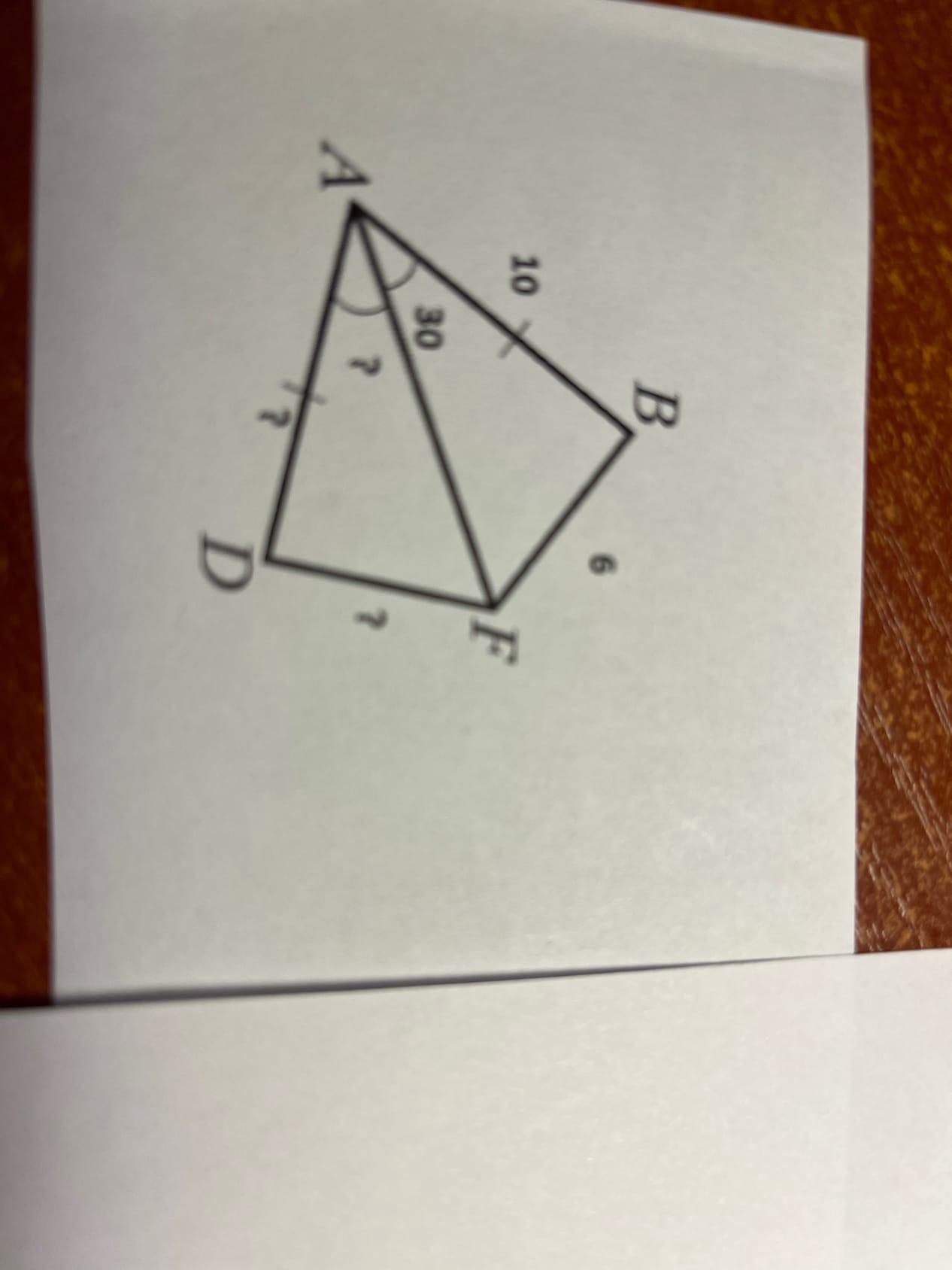 Из равенства треугольников имеем DF=BF, поэтому DF равно 6; АВ=АD, поэтому АD=10