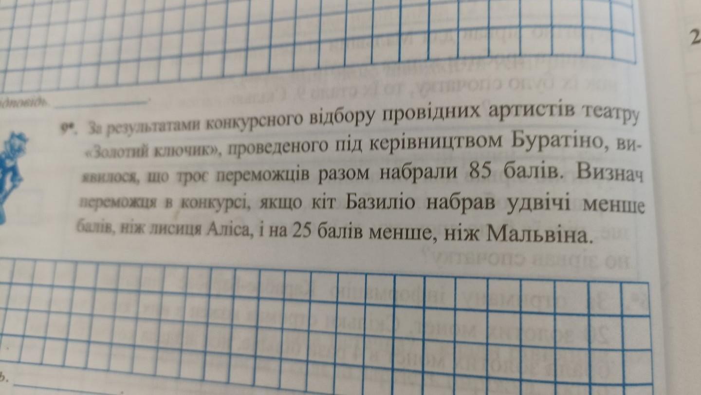 Базилио 15 балов, Алиса - 30 балов, Мальвина - 40 балов