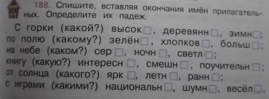 Объяснение: прилагательные согласуются с существительными в роде, числе и падеже; окончание прилагательных совпадает с окончанием падежного вопроса.