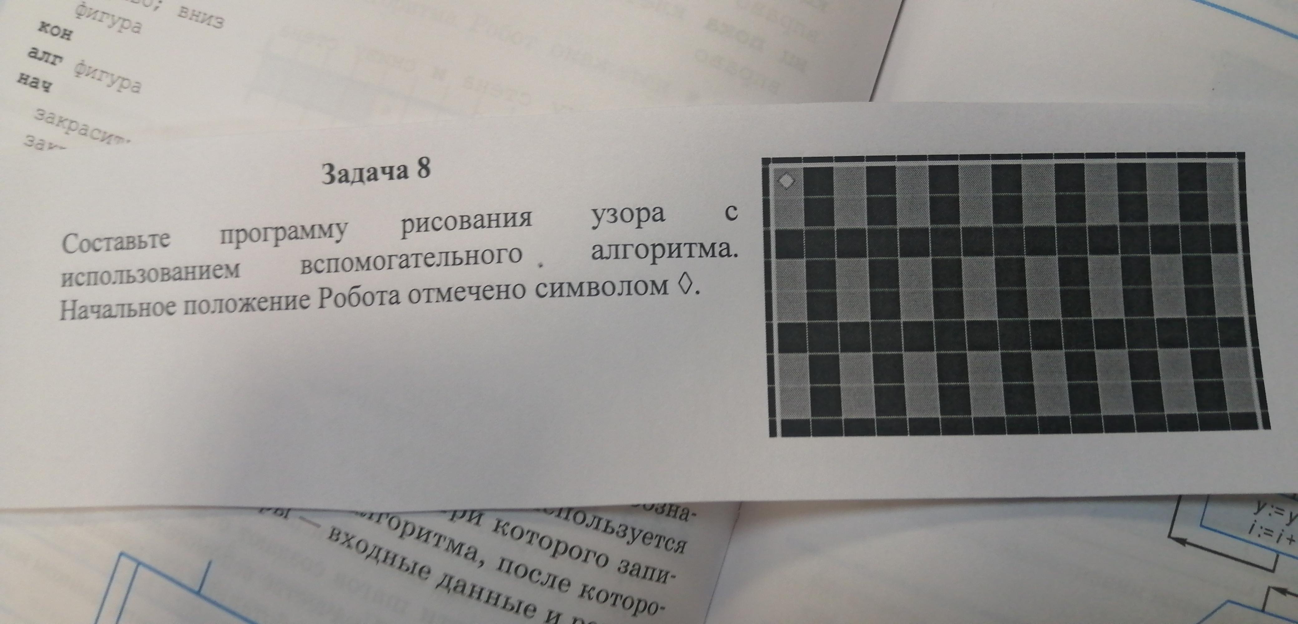 Составьте программу рисования узора с использованием вспомогательного алгоритма. Начальное положение Робота отмечено символом ромб