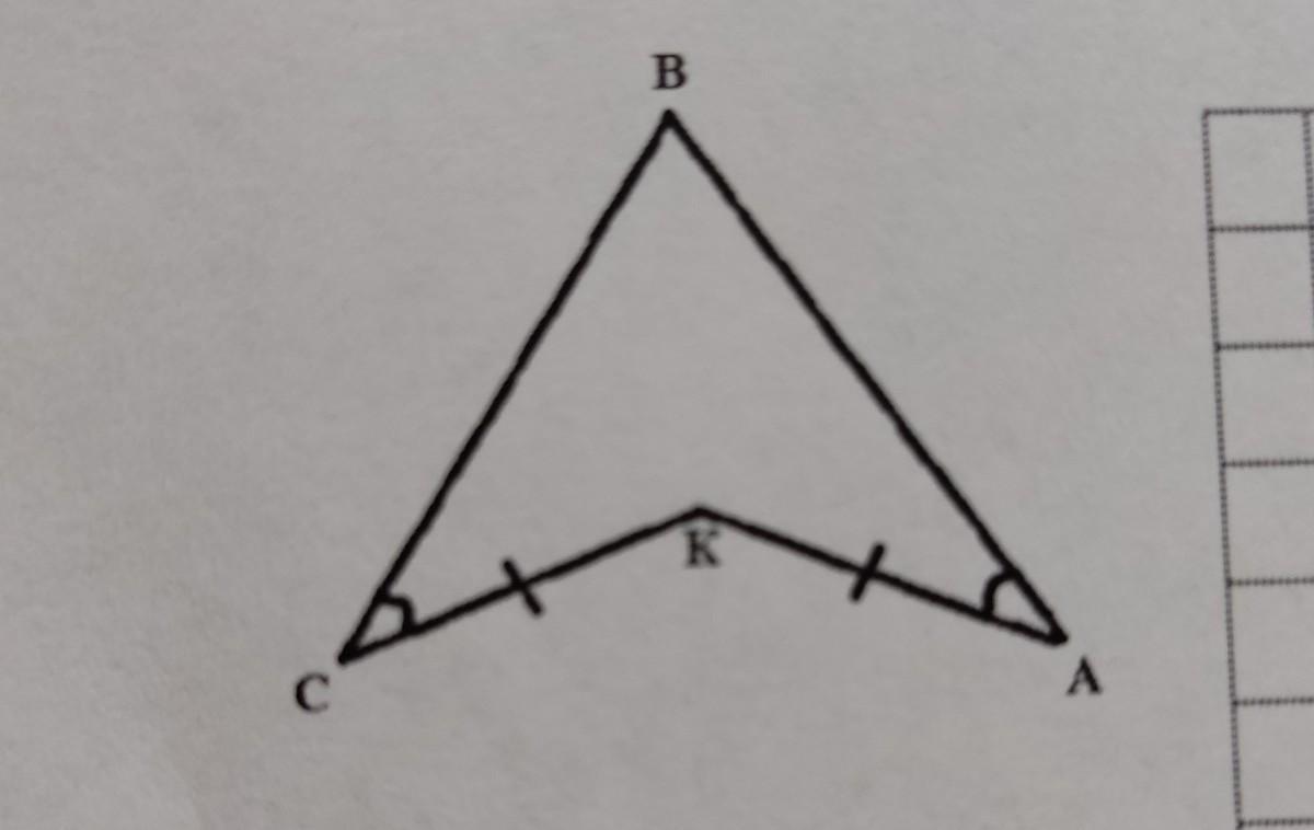 Объяснение: соединим С и А, получим равнобедренный треугольник СКА, тогда в нем углы КСА И КАС равны по свойству углов при основании, но тогда и по признаку равнобедренного треугольника т.к. углы ВСА и ВАС окажутся равными, то треугольник АВС тоже равнобедренный с основанием АС, и, значит, ВС=ВА.