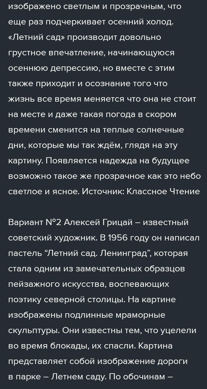 сочинение летний сад А.Грица