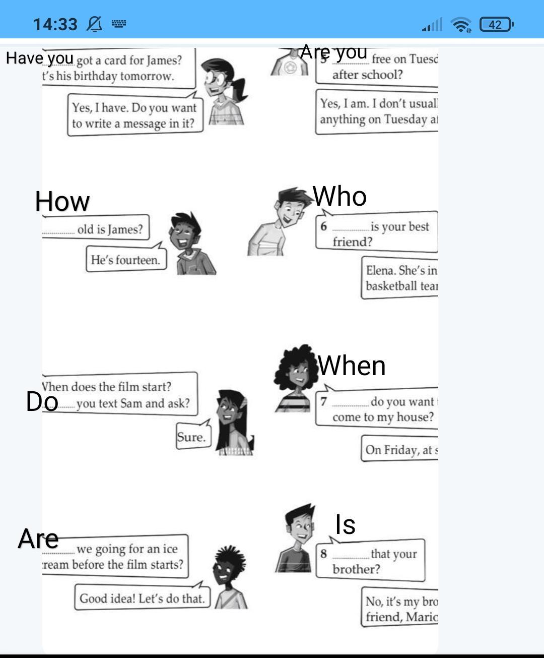 Просто нужно писать те слова, которые, соответствуют к ответам. Так и задаём вопросы