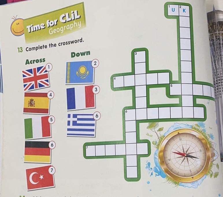 UK Time for CLIL Geography 13 Complete the crossword. A Across Down 2 | | Sple in 5 LO tall 4 3 5 6 Ge Pemain 6 B IM C e 7 C* Which country is it? Look and write
