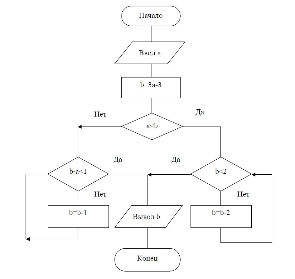 1. По заданному алгоритму, представленному в виде блок-схемы, определить значение переменной b и составить программу.