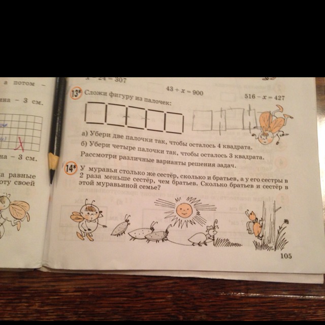 Если у муравья 3 брата и 3 сестры, тогда в семье всего 4 брата и три сестры и в этом случае у его сестры в 2 раза меньше сестер, чем братьев (2 в два раза меньше 4).