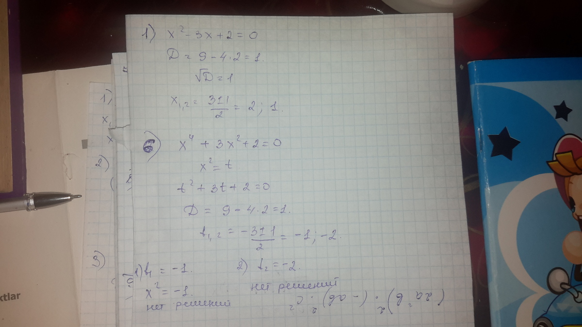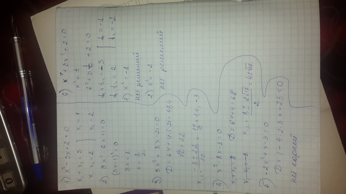 Те которые были решены по теореме Виета заново решила и добавила на страницах 4 и5 Удачи
