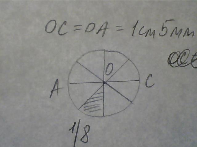 ча начерти окружность с радиусом 1 см 5 мм проведи в окружности диаметр АС раскрась 1 8часть круга