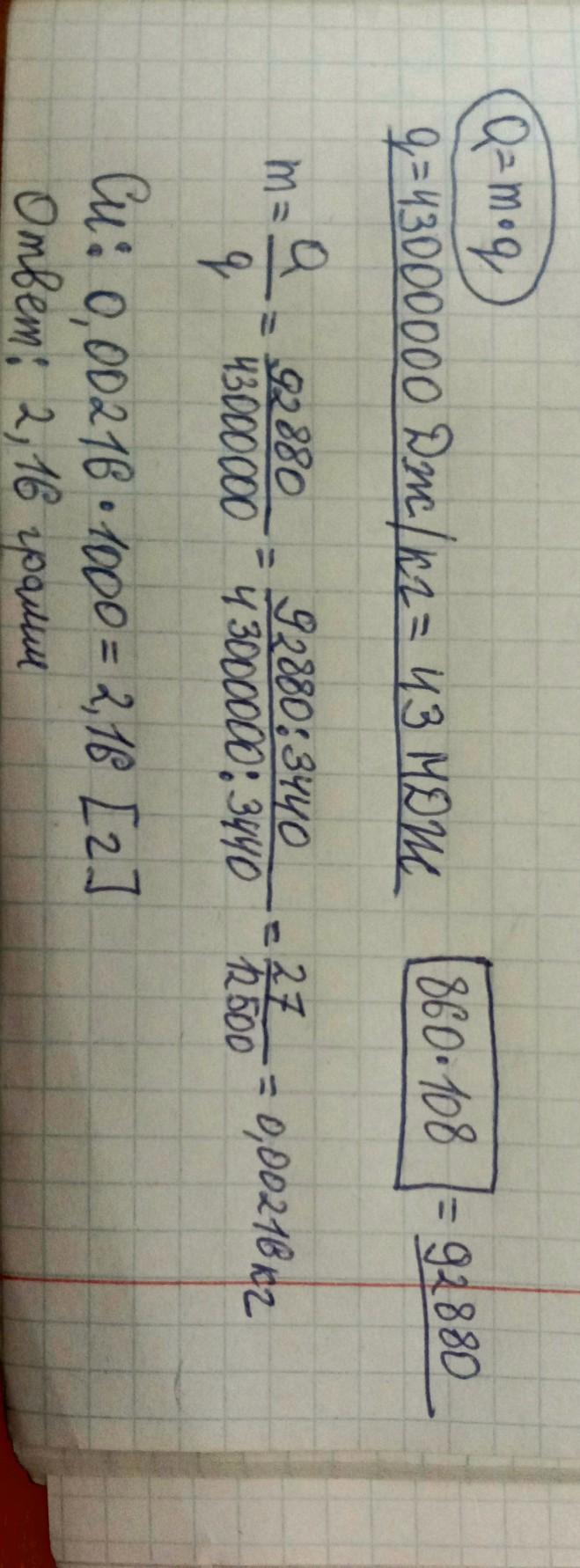 Определи, сколько нужно сжечь керосина, чтобы выделилось 860⋅108 Дж энергии. Удельная теплота сгорания керосина равна 43 МДж/кг.