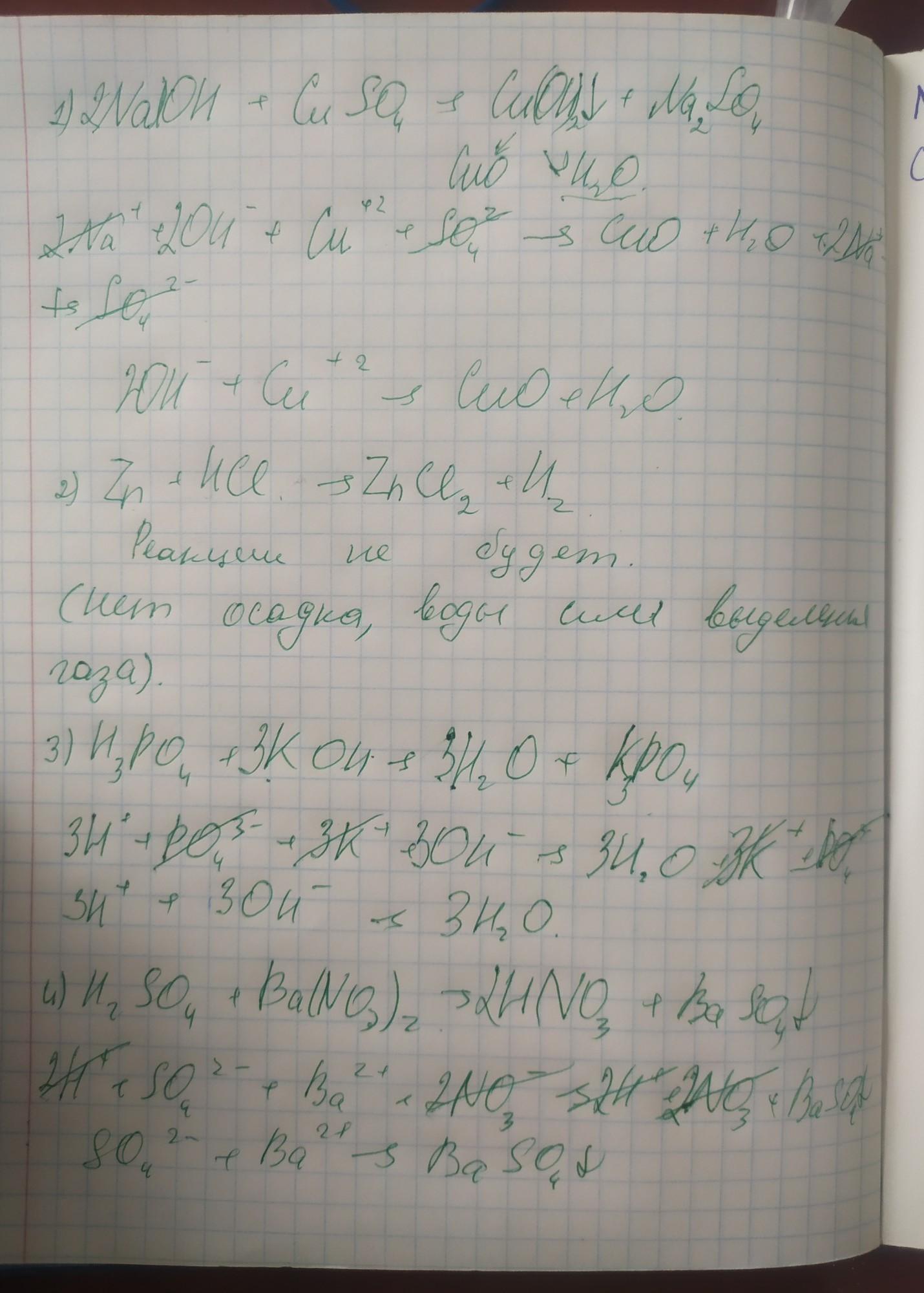 ионное уравнение проходит только в случае выделения осадка, воды или газа