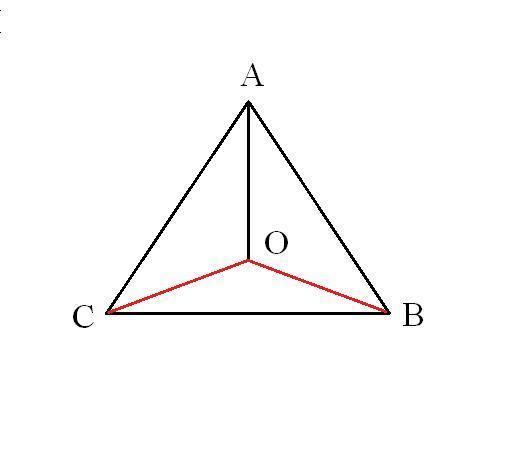OB=OC, ∠ACO=∠ABO, AC=AB⇒ΔACO=ΔABO(по двум сторонам и углу между ними, 1-ый признак равенства треугольников)