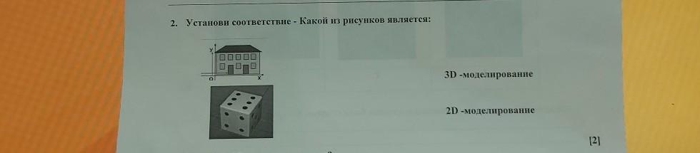 2. Установи соответствие - Какой из рисунков является: 3D-моделирование 2D -моделирование