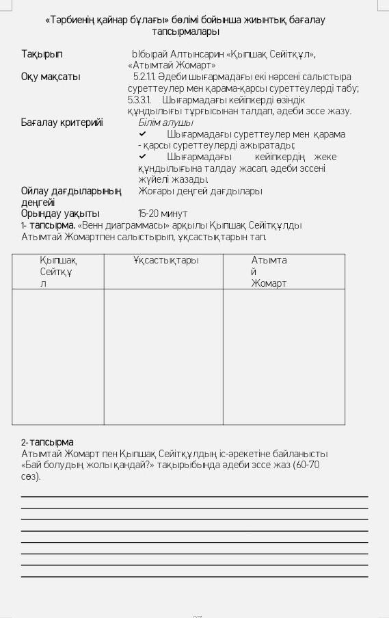 1-тапсырма Атымттай Жомарт мен Қыпшақ Сейітқұлдың бай болған. Атымтай Жомарт пен Қыпшақ Сейітқұл алдында өздері еңбектейді