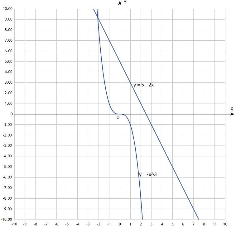 Решите систему уравнений графическим способом y=-x^3 2x+y=5 Боже молю помогите