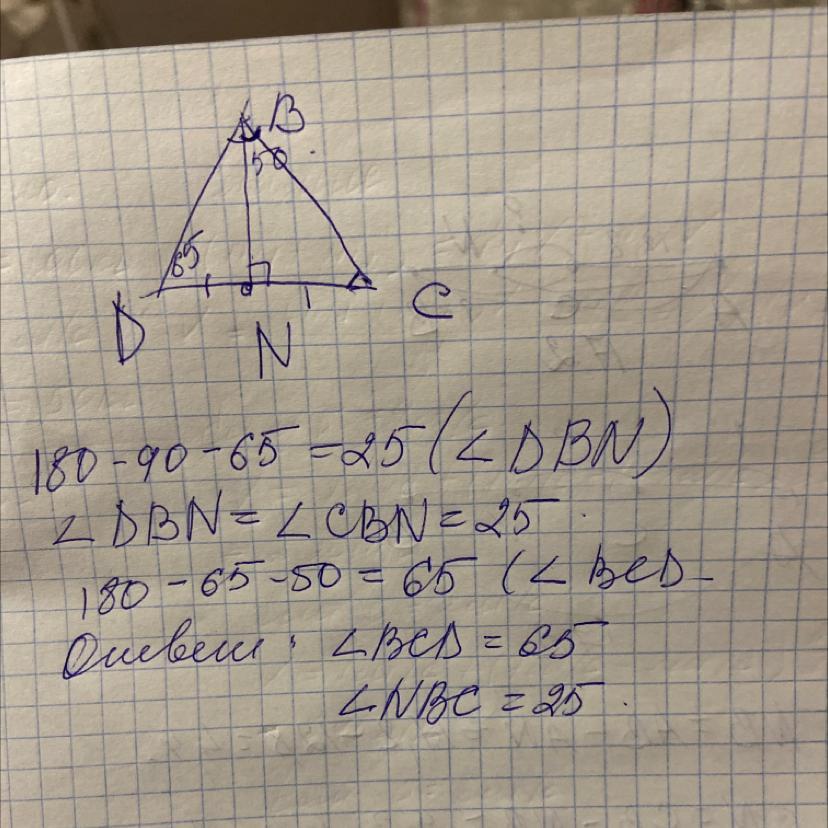 В треугольнике DBC точка N - середина стороны DC, угол BND=90⁰