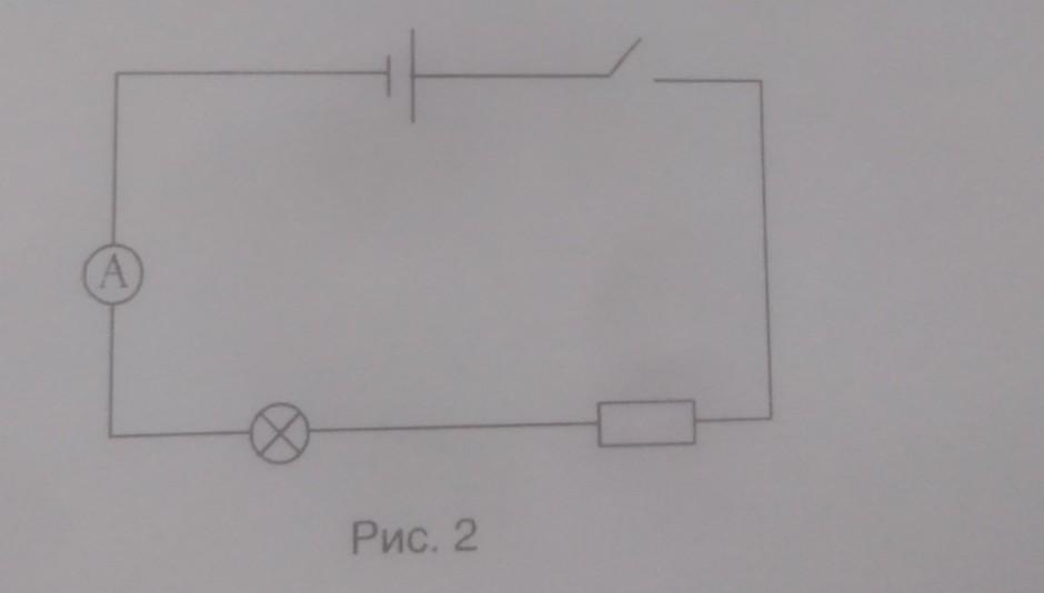 2. Схема электрической цепи представлена на рисунке 2. Назовите все звенья цепи и изобразите стрелкой направление электрического тока, если цепь замкнуть