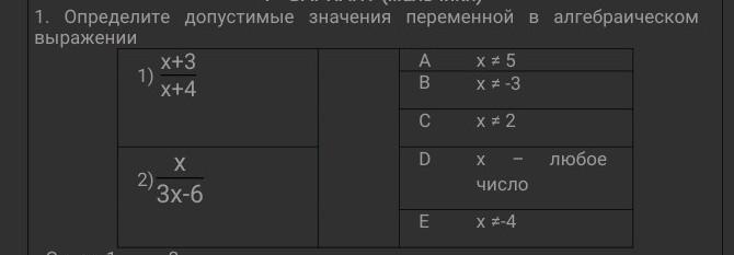1. определите допустимые значения переменной в алгебраическом выражении.СРОЧНО