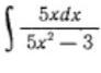 ∫5x2−35xdxu=5x2−3dxdu=10xdx=10x1du=21∫u1du∫u1du=ln(u)21∫u1du=2ln(u)=2ln(5x2−3)∫5x2−35xdx=2ln(∣∣∣5x2−3∣∣∣)+C