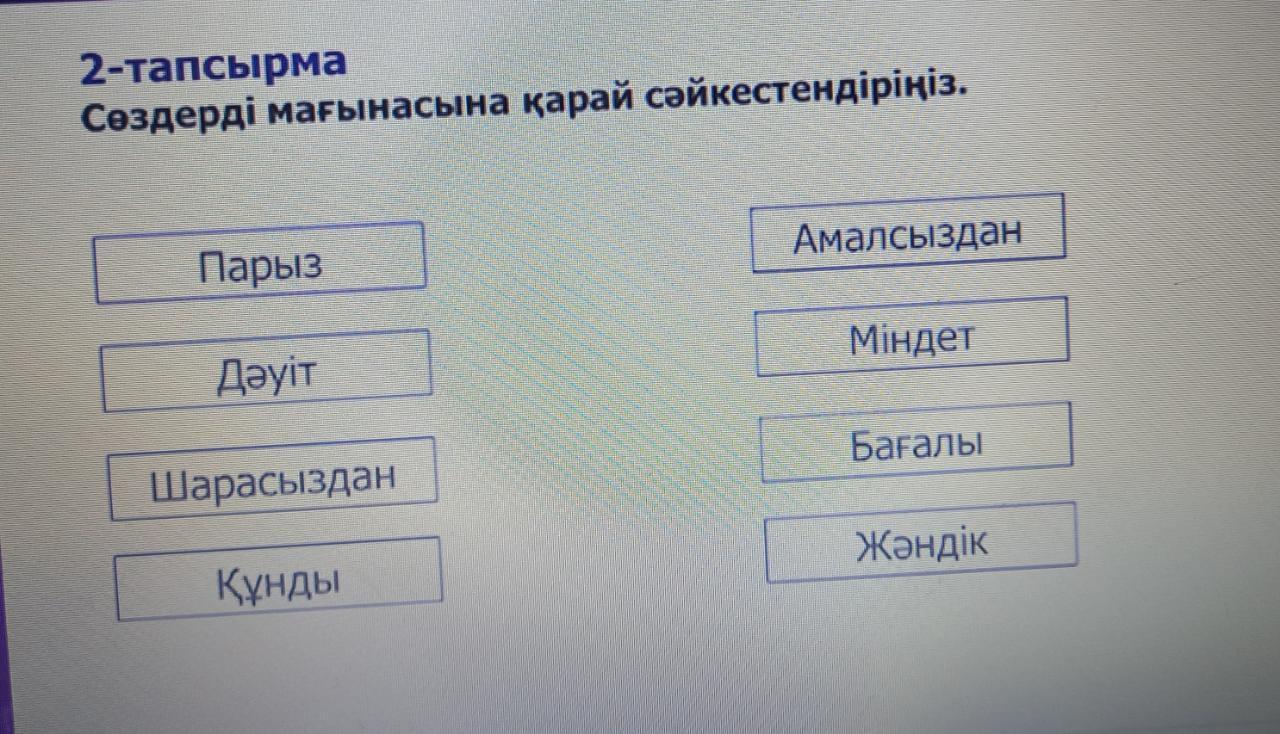 Сөздерді мағынасына қарай сәйкестендіріліп