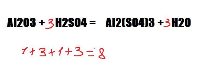 Объяснение: Al2O3 + 3H2SO4 => Al2(SO4)3 + 3H2O